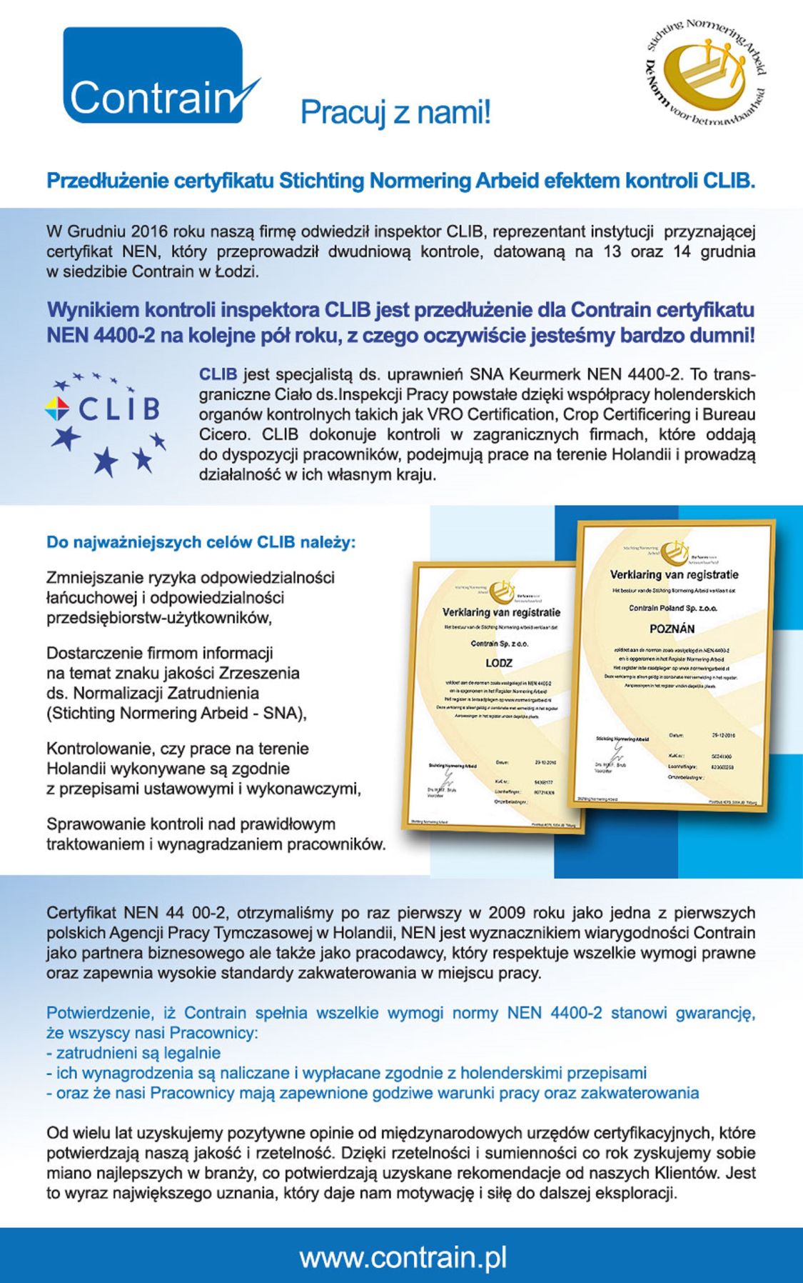 Certyfikat Stichting Normering Arbeid efektem kontroli CLIB